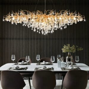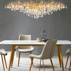 This chandelier is absolutely gorgeous. It’s part lighting fixture, part art piece. The raindrop crystals shimmer and shine whether the lights are on or not. I keep walking through this room because it makes me feel joyous, like a child on Christmas morning. Seller is great, very responsive. One crystal arrived damaged and I broke one while attaching (slipped out of my hand – oops). I contacted the seller and they quickly sent several replacement crystals, so now I’ll have a couple in reserve, just in case. The branches are sturdy and you can easily move them to get the shape you desire. I’m so happy with this magical chandelier.